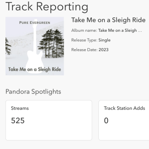 Coming in to the holiday season this year 2023 I have released several new Christmas songs. Pandora Radio has a wonderful program for artists that allows a track to be featured for 8 weeks. I have launched a campaign for the new holiday track “Take Me on a Sleigh Ride” and it has received over 50o radio plays on Pandora Radio in 10 days. I would like to ask for your help to make the most of this 8 week campaign on Pandora. If you enjoy XMAS music, would you check out “Take Me on a Sleigh Ride” on Pandora Music and give it a thumbs up if you like it? The screenshot from Pandora Radio is below and is clickable and will take you right to the track. Thank you so muchfor the support and Happy Holidays!